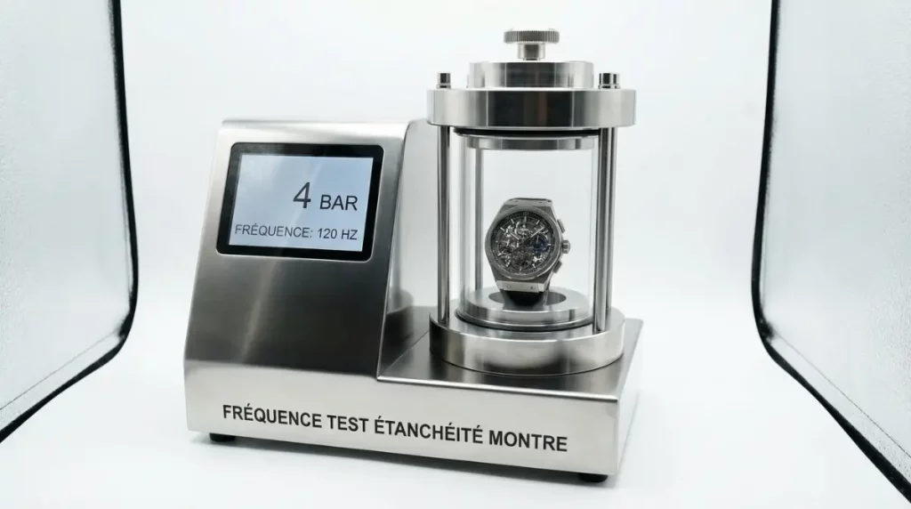 Un véritable test d’étanchéité nécessite une enceinte de pressurisation calibrée, capable d’atteindre précisément la pression correspondant à la certification de la montre. Ces appareils coûtent entre 2000 et 10000 euros selon leur sophistication.